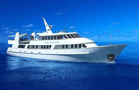 Spirit of Freedom is Australia’s most comfortable live aboard diving vessel offering the best dive cruising to the Great Barrier Reef and remote Coral Sea reefs out of Cairns in tropical north Queensland. During your dive trip you will be treated to first class chef prepared meals and complimentary wine with your evening meal after an amazing day of diving or snorkelling. There are three decks on Spirit of Freedom with a separate lounge, dining and under cover top deck providing plenty of space for up to 26 guests. The 11 generous air-conditioned cabins all containing private bathrooms make for a very comfortable live aboard diving adventure to the Great Barrier Reef.