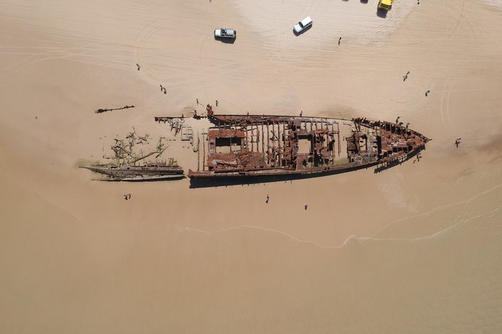 Maheno Shipwreck – Washed ashore in 1935, this historic hull is one of Fraser’s most iconic photo stops.