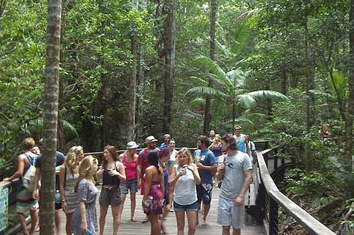 After breakfast this morning, the first stop is Lake McKenzie. Sunbake, explore or chill and relax on the lakes perfect white sands and swim in the pristine fresh water. After drying off we make our way to the cool of the rainforest. Here you will take a boardwalk along the crystal clear waters of Wanggoolba Creek, spot fresh water eels, see magnificent rare giant King Fern and experience the unique world heritage Satinay Forest. Then take a hike through tropical rainforest at Central Station along the banks of Wanggoolba Creek to Pile Valley. Early afternoon, we start our journey south departing Fraser Island back to Rainbow Beach
