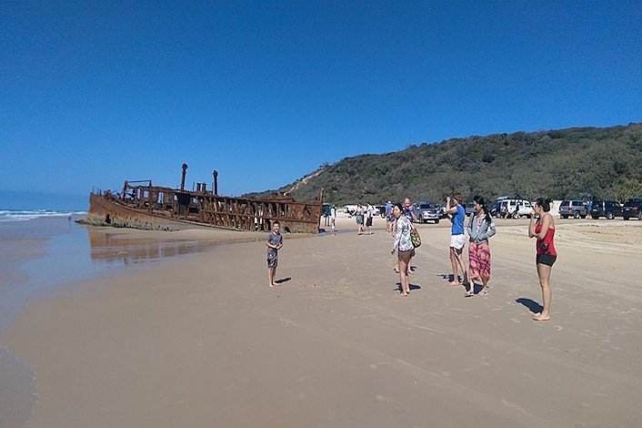Joining our tour from Brisbane we 4WD along tracks to Inskip Point beach and Fraser Island lookout, before boarding your ferry cruise to Fraser Island. All ferry tickets and national park fees are pre arranged to save time. As we cruise across the Straight, photo Tin Can Bay, Fraser Island's west coast and Hervey Bay, and keep a look out for dolphins, turtles, dugong, sharks, eagles, sea birds and fish. Arrive Fraser Island world heritage National Park. Your local guide will give information and stories both old and new as you 4WD Fraser Island's 75 Mile Surf Beach with an eye out for dingoes, kangaroos and whales (in season).