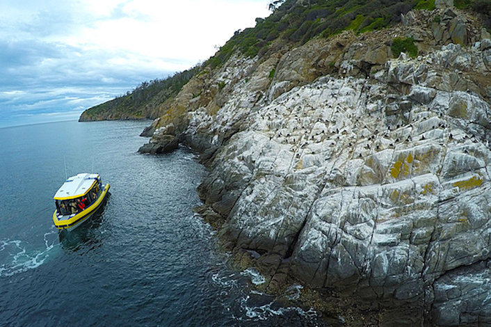 Cruising into Storm Bay, we reach Betsey Island. This uninhabited island is home to a variety of seabirds, including gulls, cormorants and the majestic white bellied sea eagle.