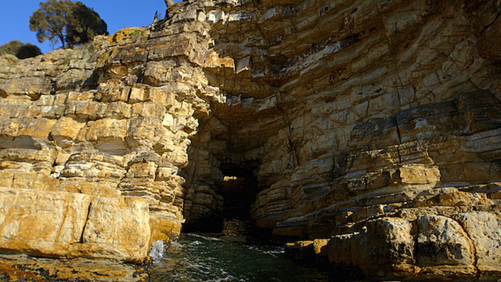 As we circumnavigate Betsey Island, Hope Beach comes into view. This isolated beach is known for its large breaks and offshore winds. We cruise close in to the shore and feel the swell surging straight from the Southern Ocean; these conditions make this a favourite spot with local surfers.