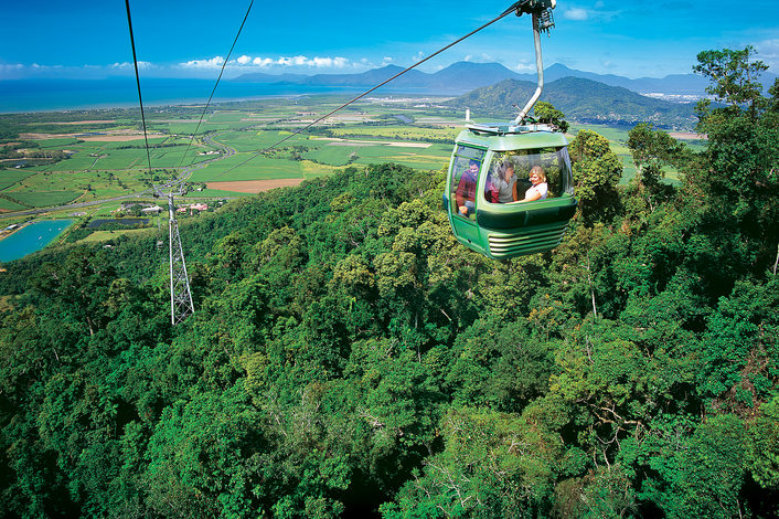 Wander through the tropical Fruit Orchard featuring over 40 local and international exotic fruit trees. Glide over the rainforest canopy aboard Skyrail Rainforest Cableway, with stops at Red Peak and Barron Falls stations.